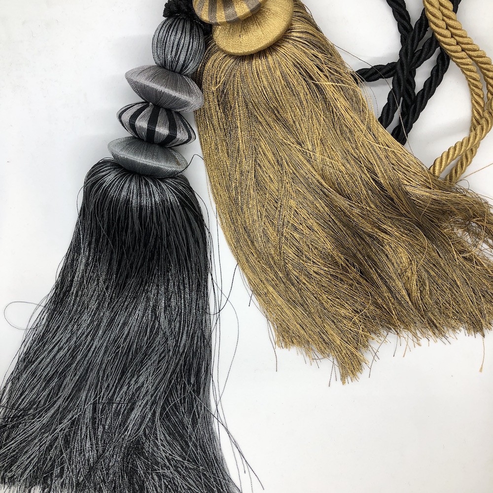 Our tiebacks and tassels add a refined finishing touch to your curtains. Most items are discounted and available in limited quantities—please inquire to learn more.